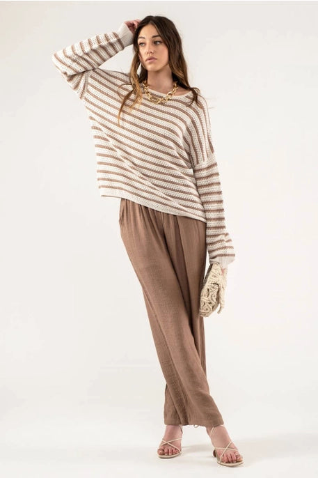 B3FT1049 Relaxed Stripe Knit Pullover Taupe
