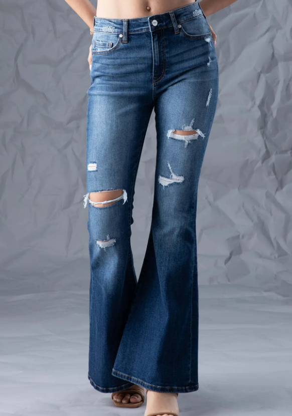 Long flares featuring a fabulous wash and some distressing throughout. Ceros denim pairs high-quality denim with good stretch to make their pants comfortable for all day wear.