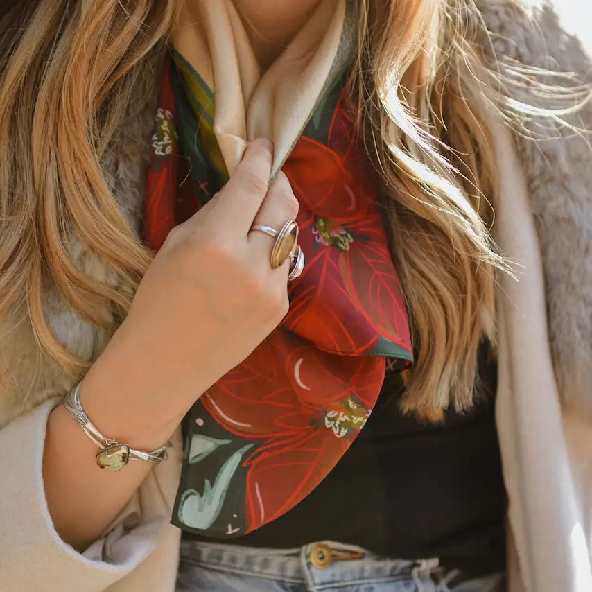 These beautiful, vibrant scarves are designed in Oregon, they are super flow-y and versatile. The stylish 26" multi-use scarf can be worn as a bandana, headband, ponytail, or neck scarf!