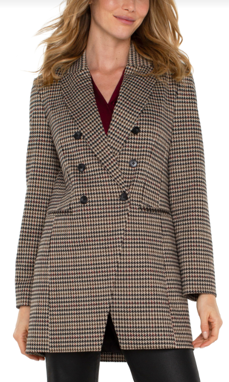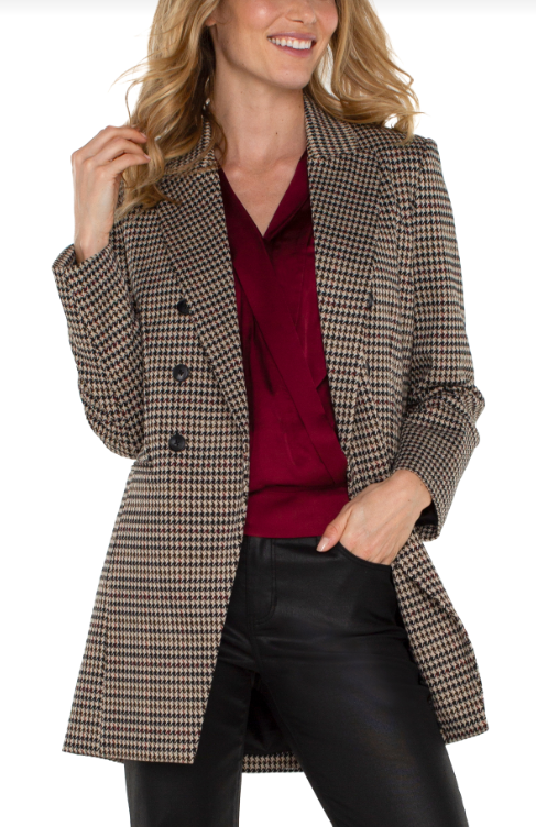 double breasted longline blazer blk houndsth