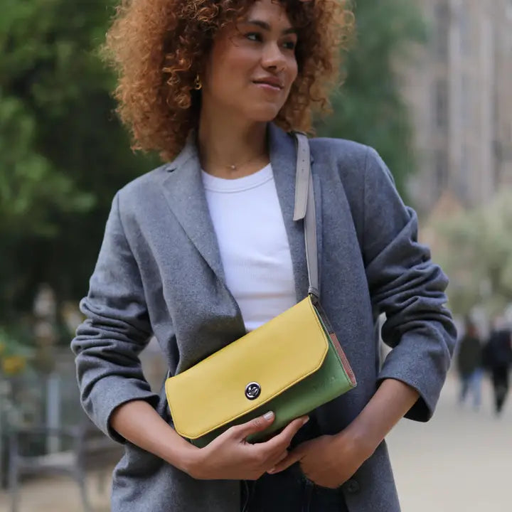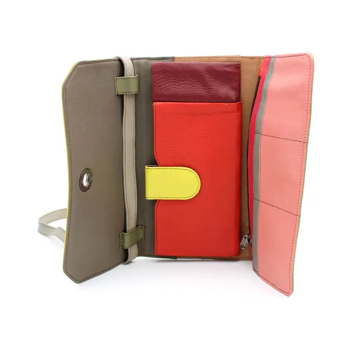 Leather Clutch / Handbag Wallet with 9 card slots and a large main compartment that fastens with a magnetic pocket.