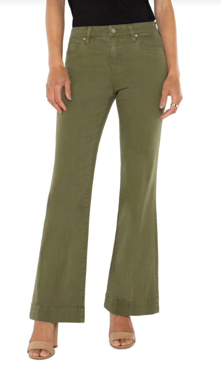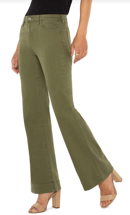 Whether you're off to a concert or brunch with friends, these stretchy jeans will have you covered with their chic cropped-flare silhouette and bold olive hue.