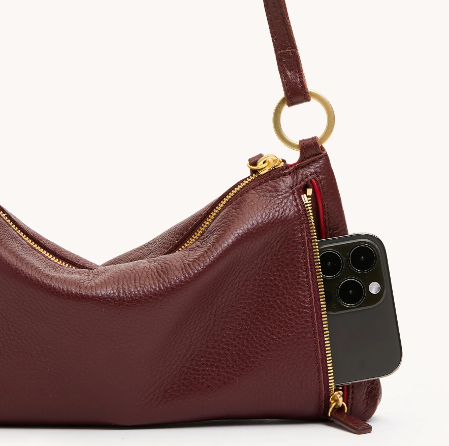 - Crafted with soft pebbled leather featuring a short fringe detail