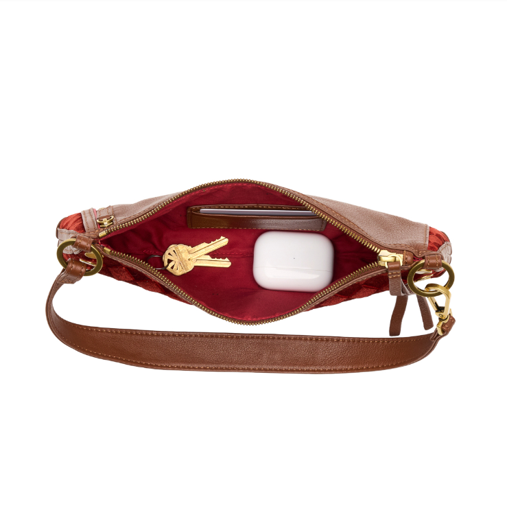 The suede is deliciously soft - and we're here to help you keep it that way! We handpick suede that is generally water resistant. We do recommend keeping this bag away from dirt and oils - storing in its dust bag is a must! Take special caution after applying lotion, sunscreen or other skincare. We recommend washing your hands before carrying your bag!