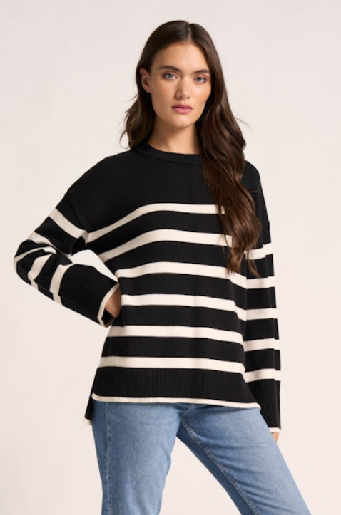 We have loved this casual sweater in every color, and now we have it in the classic black and white!