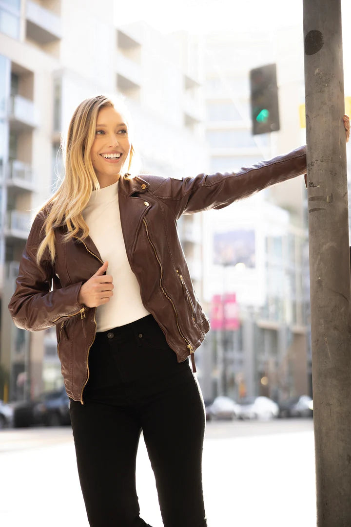 Sharp and sleek. A classic fitted jacket with gold zipper detailing. Elevate your everyday in Raizel.
