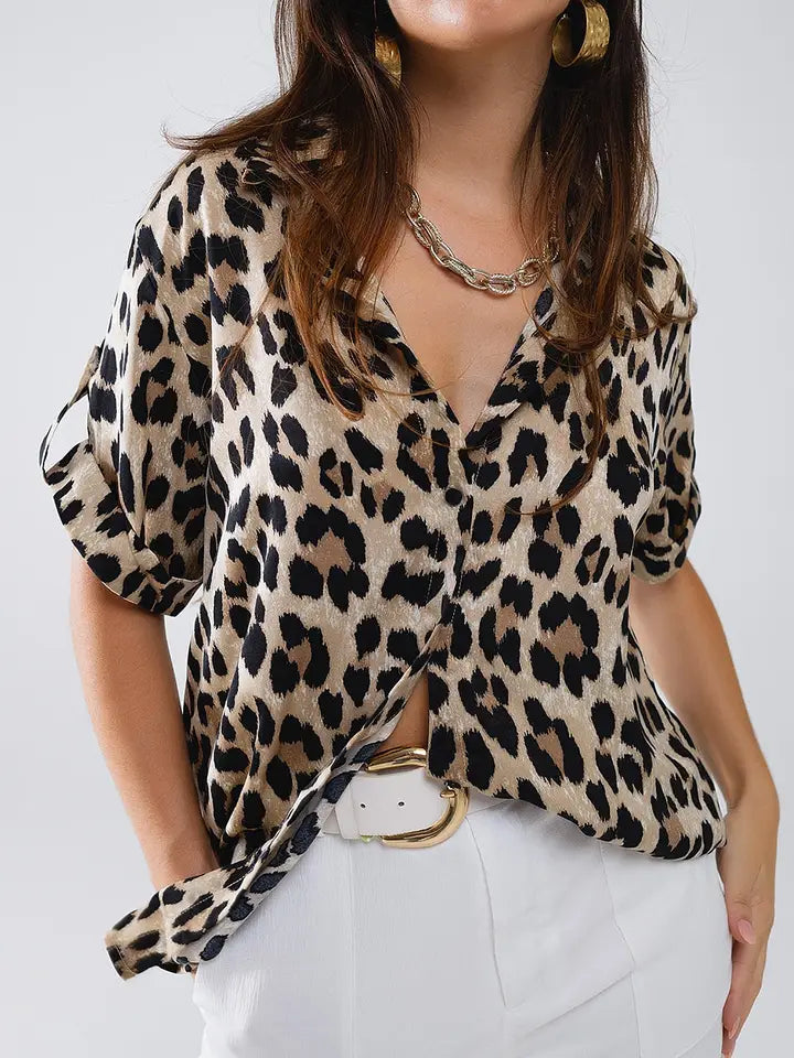 Relaxed Leopard Shirt Rolled Cuffs