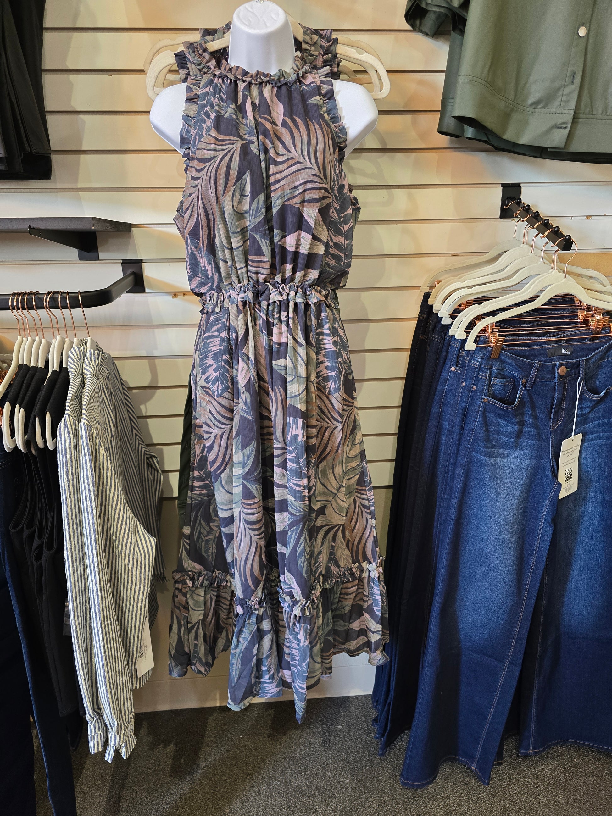Sleeveless Printed Ruffle Midi Dress